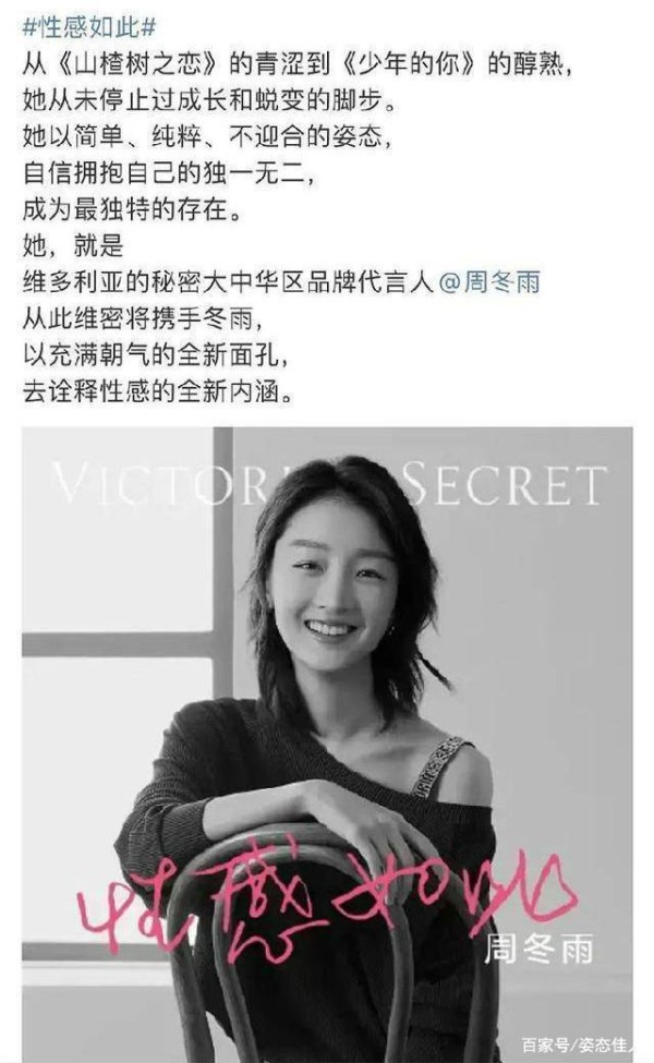 跟性感不沾边的周冬雨,却拿下了维密首次明星代言,她凭什么?
