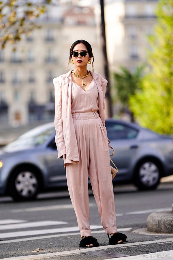 宽松但不拖沓的廓形是核心。例如周雨彤常穿的oversize衬衫、落肩西装,通过肩线与腰线的自然垂坠,营造出「刚好的余量」,既修饰身形又保留活动空间。
