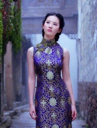 首先是神仙姐姐刘亦菲的这一款深蓝色旗袍,其中有或大或小的花纹图案呈对称分布。刘亦菲大家都很熟悉了。无论是《仙剑》里的赵灵儿,还是《神雕》里的小龙女,可以说都是仙气满满,也是属于无法超越的那种风格。刘亦菲的特点就是清纯和仙女气,而这款古风旗袍,就完美的展现了一种来自江南古镇的历史悠久感,可以说将江南女子的柔情温婉展现的淋漓尽致。不得不感慨,这么多年过去了,神仙姐姐还是那么好看。