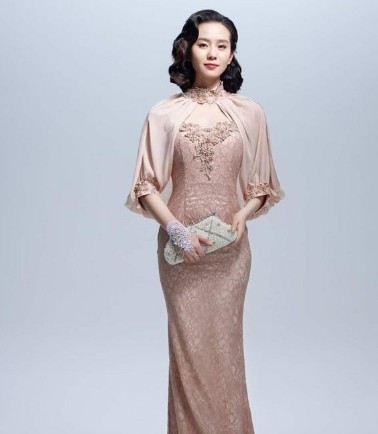 刘诗诗的这身粉色旗袍,融合了不少西方元素在里面,还有东方独有的刺绣花边,可以说很有一种贵妇的感觉。