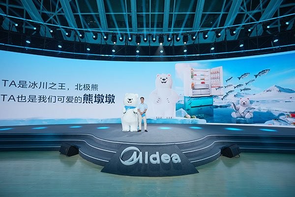 北极熊,身处地球的极致冰冻之地,其庞大的身躯天然传递着“能装”、“容量大”的联想,而憨态可掬的外形又瞬间拉近了与用户的距离,唤起温暖可靠的情感共鸣。 美的冰箱正是捕捉到这种天然的认知联结,将北极熊形象进行二次创作,最终诞生了亲切的“熊墩墩”。