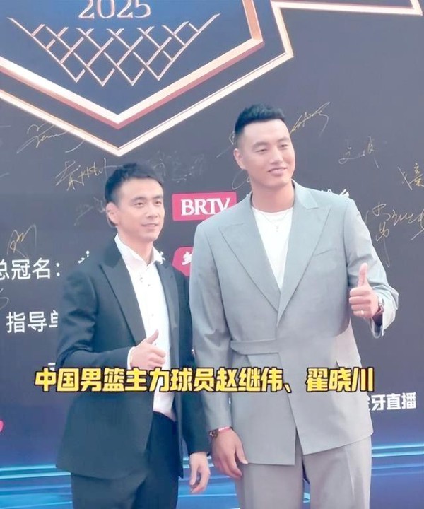 人声鼎沸中,北控与广东的混搭阵容闪亮登场。雷蒙稳站最左方,周琦屹立中央,而赵继伟与翟小川则分列两侧,虽身高参差不齐,却巧妙地构成了锯齿状画面,令人惊叹不已。这场“最萌身高差”的视觉盛宴,再次成为众人热议的焦点。