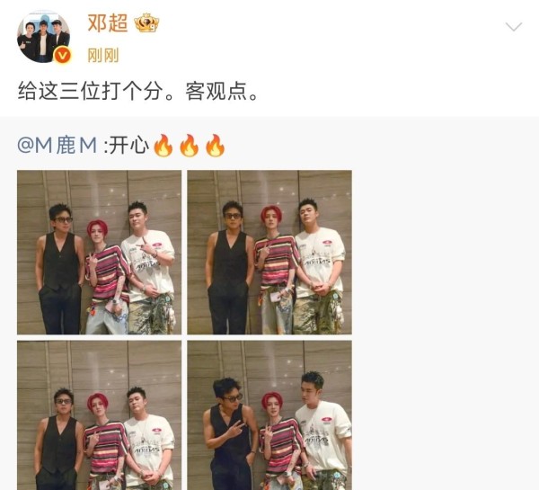 鹿晗像团宠般可爱。邓超陈赫与鹿晗合影重燃综艺回忆