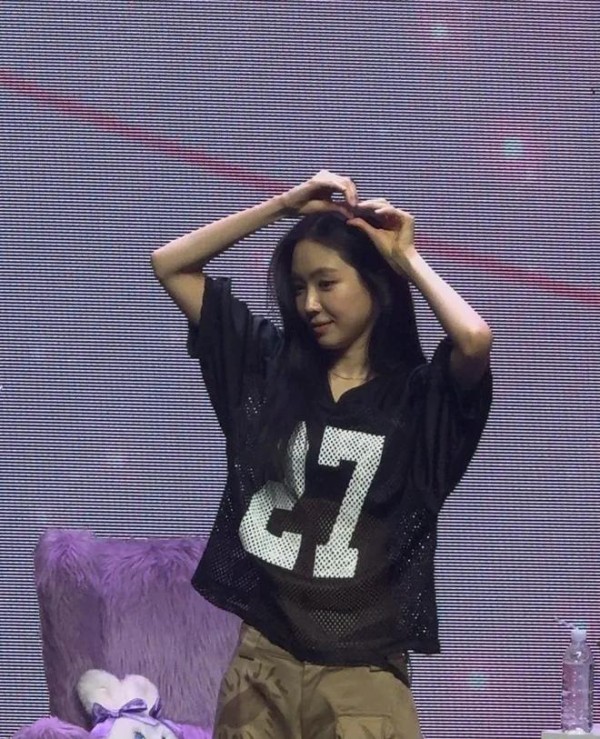 孙娜恩还给粉丝们来了头顶比心,韩国人确实对比心很执着,而且不停发明比心的新方式。