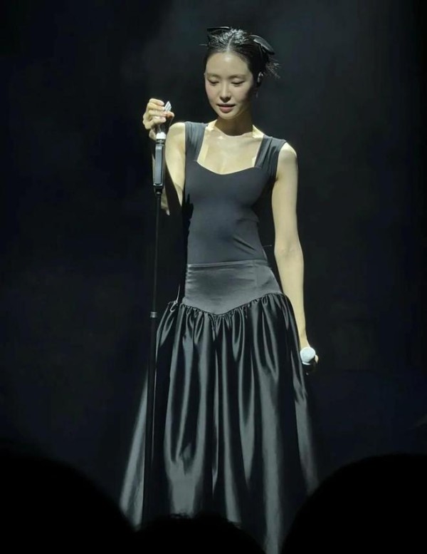 她穿着黑色的礼服,戴着蝴蝶结,现在舞台上准备唱歌给大家听,这一幕真的等太久了,明明她那么适合舞台的,她生来就应该是闪闪发光的女明星。