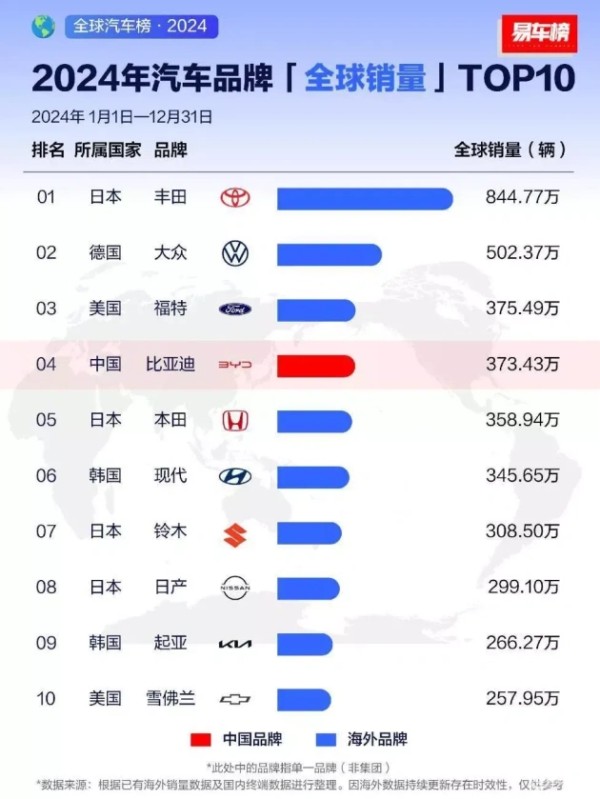在新能源汽车领域,一股力量正在迅速改变行业格局。2024年,比亚迪迎来高光时刻——成功突破370万辆销量目标。这一辉煌成就,不仅彰显了比亚迪强劲实力,更标志着比亚迪在全球市场的崛起。比亚迪的崛起,无疑刷新了新能源汽车领域的销售纪录。近日,各大车企及行业媒体陆续发布了2024年汽车销量数据。在各类榜单中,比亚迪排名均十分优异:2024年汽车品牌全球销量排名第四、2024年全球汽车品牌销量单月榜多次位列第二。自1995年成立以来,比亚迪品牌便以惊人速度在市场中快速成长。
