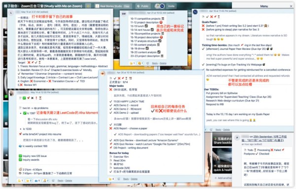 这就是近来流行的“云自习”。通过加入视频会议的方式,即使独自在家也可以像在图书馆或者教室一样,和陌生人一起自习。