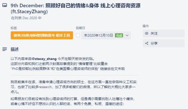 伴随这个独特的自习室的,还有一个利用免费任务管理工具“Trello”制作的公开打卡平台。这也是自习室实现急速增长的秘密。