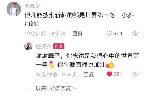 刘德华说:“但凡能披荆斩棘的,都是世界第一等,小齐加油!”非著名娱评人吴清功指出:刘德华和任贤齐在2009年一起合唱过这首歌。任贤齐巅峰时期,可以威胁到香港四大天王的地位,刘德华很尊重任贤齐。