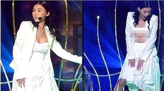 张柏芝有一次的演唱会可以说是出现了演出事故吧,在张柏芝还没有穿好衣服的情况下升降台就被升上去了,直接春光乍泄,造成大面积的走光,引得台下粉丝纷纷尖叫,之后怎么处理小编忘了,但是这张照片可以说是非常尴尬的演唱会的见证了
