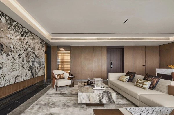 东方哲学与现代生活理念在此和谐共生,营造出一种“内敛文化”的独特氛围。茶室的雅致布置宁静致远,展现了不张扬却内涵丰富的生活哲学;男孩房的独特马术元素收纳区及主卧的高级定制衣帽间等细节,则展现了“贵族生活”对生活品质的不懈追求与低调奢华的生活态度。此外,项目携手国际知名奢华品牌,将艺术装饰、东方韵味与现代潮流完美结合,以极简线条、珍贵材质、精致细节及优雅布料,共同编织出独一无二的居住艺术。