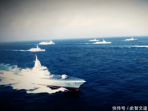 22. 由中国海军主力舰艇组成的远洋编队,以055型万吨级驱逐舰“鞍山舰”为旗舰,浩荡穿越大隅海峡。编队包括054A型护卫舰及大型综合补给舰,全程紧贴日本领海外侧狭窄公海航行,航线距离海岸线最近处不足二十海里。