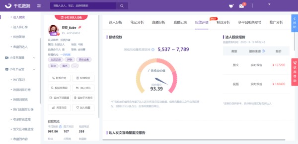 对于品牌、商家来说,如果没有小红书数据的分析,在投放推广的时候只能摸着石头过河,无法了解这个小红书达人的粉丝哪些是水粉、粉丝主要关注的焦点是什么,达人以前的品牌投放的笔记数据如何,并且如果进行大规模的投放,费时、费力、费钱,效果还不佳。