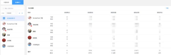 除此之外,在监测账号中,也能看到所有监测账号的每日增量,从而快速对各个账号进行评估