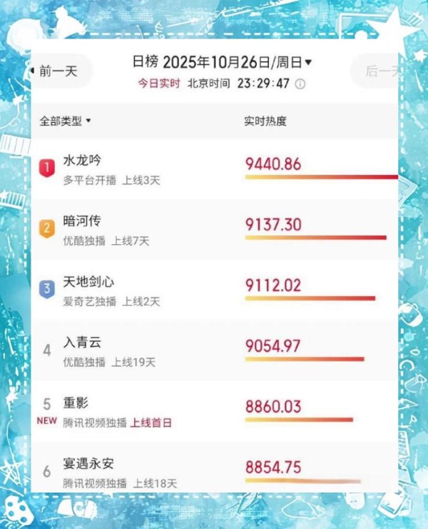 近期,多位帅哥主演的新剧如龚俊、成毅、罗云熙、侯明昊及丁禹兮等人的作品纷纷亮相,尽管这些剧集在题材上有所相似,均为古装偶像剧,但其目标受众明确,主要依赖粉丝群体的支持,因此可视为定制化产品。在这样的背景下,尽管各剧集间的竞争并不十分激烈,毕竟它们之间的交叉受众相对较少,但观众对于各剧集数据的比较却一目了然,高低之分自然显现。