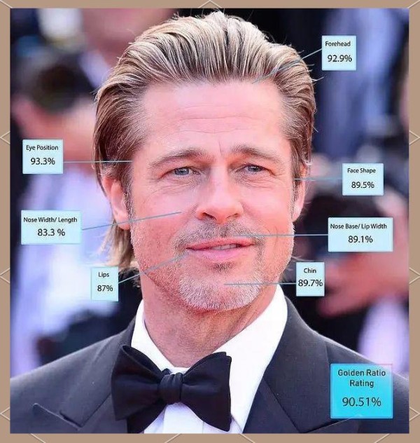 同时,我们也揭晓了其他十位上榜男明星及其各自的黄金比例百分比。