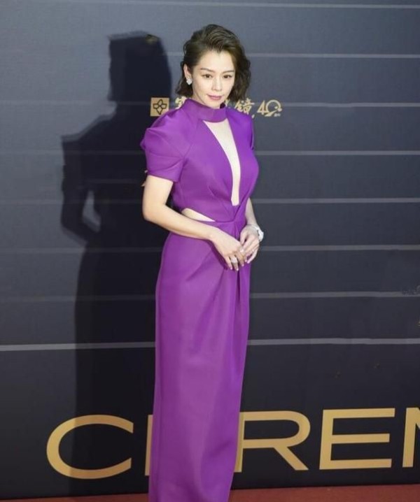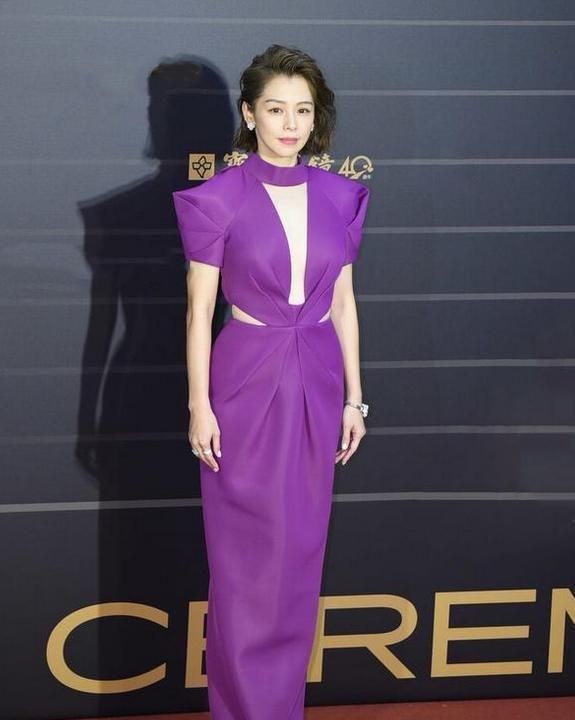 45岁徐若瑄真敢穿,一袭紫色礼服裙摩登又前卫,宛如未来女战士