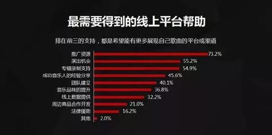 曝光度过低,缺乏大流量平台的支持。优质资源依然在向大公司、头部艺人倾斜,而大多数原创音乐人没有公司、团队,他们只是借助互联网上传音乐作品,如此一来,他们的作品可能永远石沉大海。网易云音乐关于独立音乐人现状的调查显示,独立音乐人最希望得到线上平台的帮助中,排名前三的都是希望能有更多展现自己歌曲的平台或渠道。