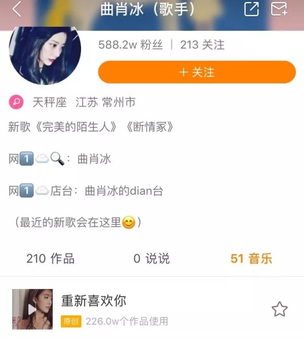 通过短视频,曲肖冰似乎找到了一条适合自己变现渠道。其原创歌曲《重新喜欢你》在快手使用量达到226万,直接变现上百万。目前,曲肖冰的快手账号已经拥有超过588万的粉丝量,大部分视频也都超过了百万的播放量。“把音乐与互联网深度结合,就会赚得比较多。”这是目前曲肖冰,也是众多音乐人在变现之路上比较一致的看法。
