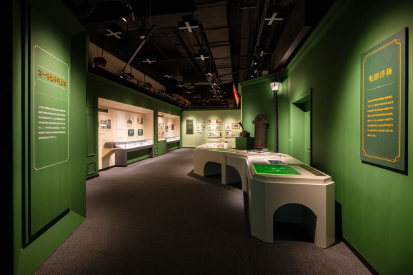 除了内容聚焦上海电影的繁荣,展览亦通过视觉设计,传达上海的海派摩登气质,极具颜值属性。三大展区分别采用三个主色调,展区一以摩登绿色,展现早期上海电影的生机勃勃;展区二以浓烈红色,代表上海电影的大繁荣和薪火传承;展区三以明亮黄色,代表上海电影之城的热烈和蓬勃。