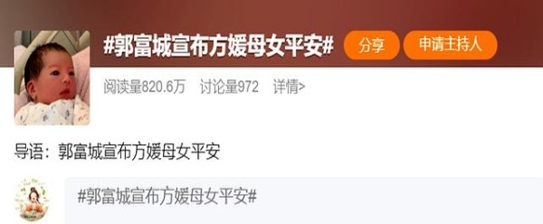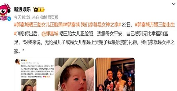 消息来源很直接,郭富城在个人社媒上对外宣布母女平安,并配上了孩子的照片。