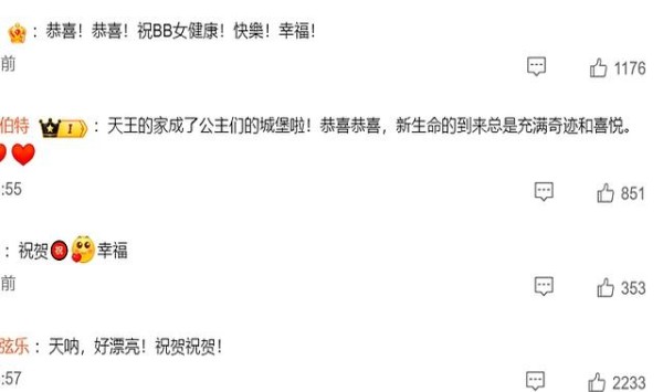 部分粉丝以喜庆语气庆祝天王再添家中新成员,认为这是家庭幸福的延续。