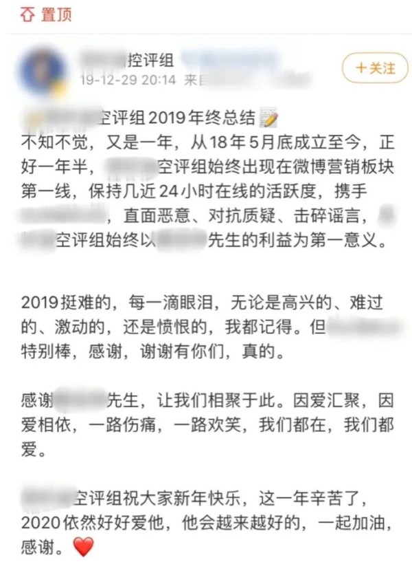 在粉丝群体的组织架构中,专门的“控评组”负责发布任务,讲解流程,设定目标。粉丝的控评行为愈发组织化和专业化,甚至控评时使用事先编写、整齐划一的文案内容,其目的都是让其他粉丝快速识别,从而更加迅速有效地点赞和回复。