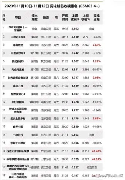 上周末综艺收视率排名出炉,国民综艺双雄争霸,芒果台救星初现!