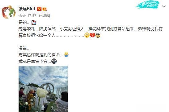其中,张远的博文尤为引人注目,他写道:“魏晨的婚礼,陆虎担任伴郎,小亮哥作为证婚人,这一切仿佛命中注定,我就是这场婚礼的嘉宾。”而事实也确实如此,晚宴上,张远深情演唱了《嘉宾》,为魏晨的婚礼增添了更多浪漫与温馨。