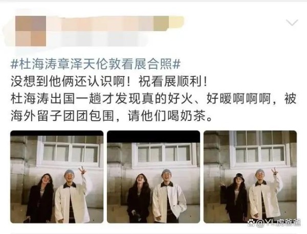 破次元同框!杜海涛章泽天伦敦看展,半步距离藏社交密码