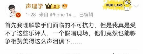 在这场风波里,有歌迷表示,王菲假唱不是她一个人的错,而是整个演艺圈都有的毛病。在赚钱和满足市场需要的压力下,不少明星只能靠假唱来讨好观众。这样做既毁了明星自己的名声,也让整个音乐行业没法好好发展,生态都乱套了。