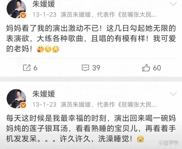 成名后,朱媛媛特别感激自己有这么好的家庭背景。她还会经常把父母接到北京住。在她以前的社交平台里,也能看到她记录父母帮带孩子,还有从老家带来的各种特产。哥哥姐姐各有事业,不会因为她是明星妹妹给她添麻烦。大家都很独立,但又心心相印,是真正的一家人。
