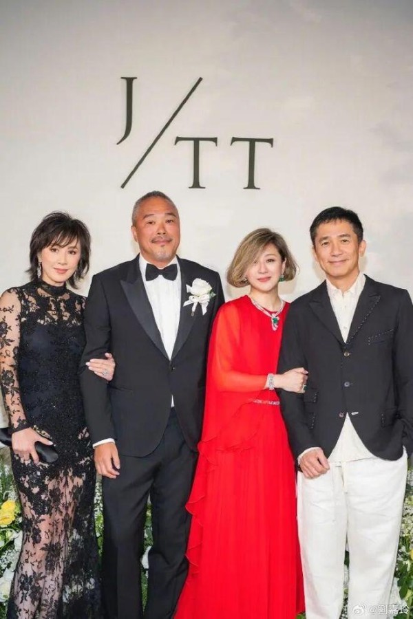 刘嘉玲晒与梁朝伟参加朋友婚礼的合照,夫妻二人笑容满面,心情超好