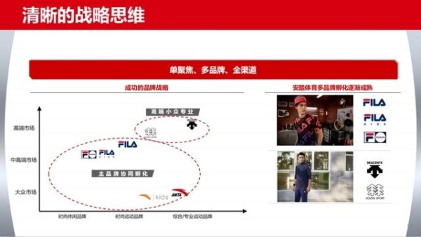 安踏在“单聚焦、多品牌、全渠道”的发展战略下,已经成为一个拥有多品牌的体育用品集团。
