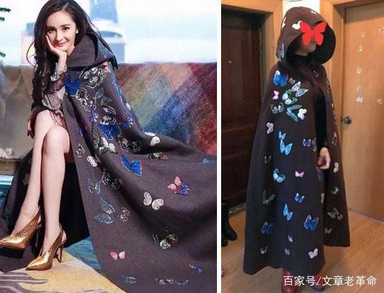 这件黑色的绣花斗篷披风,在杨幂身上看上去高贵典雅,到了我们的买家身上像是黑暗的巫婆,真是浪费了斗篷上那些漂亮的蝴蝶刺绣!