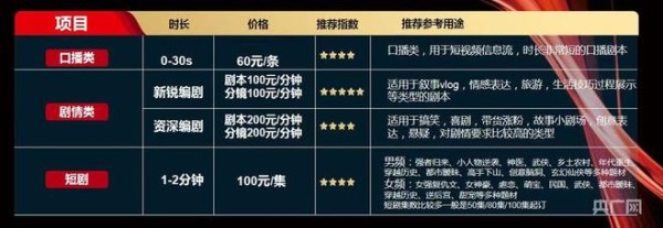 短视频剧本报价单(央广网发)