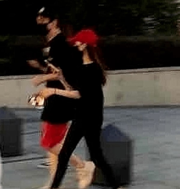八月份,被拍到穿着红色短裤跟神秘女子上街: