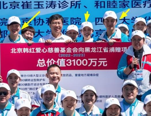在由韩红发起的“百人援助龙江捐赠及出发仪式”上,韩红与一众明星身着志愿者服装,携带着价值3100万的募捐物资做好准备出发。