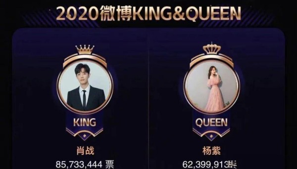 微博之夜投票倒计时,肖战远超时代少年团,杨紫第一名稳了2020微博之夜落幕 肖战杨紫获微博king&queen