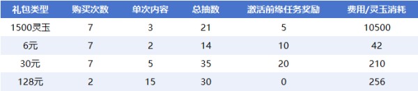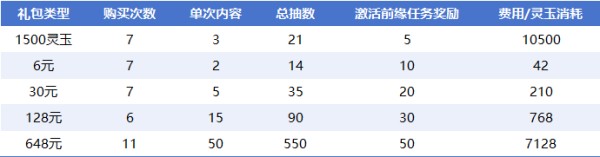 一、抽卡石礼包价格表