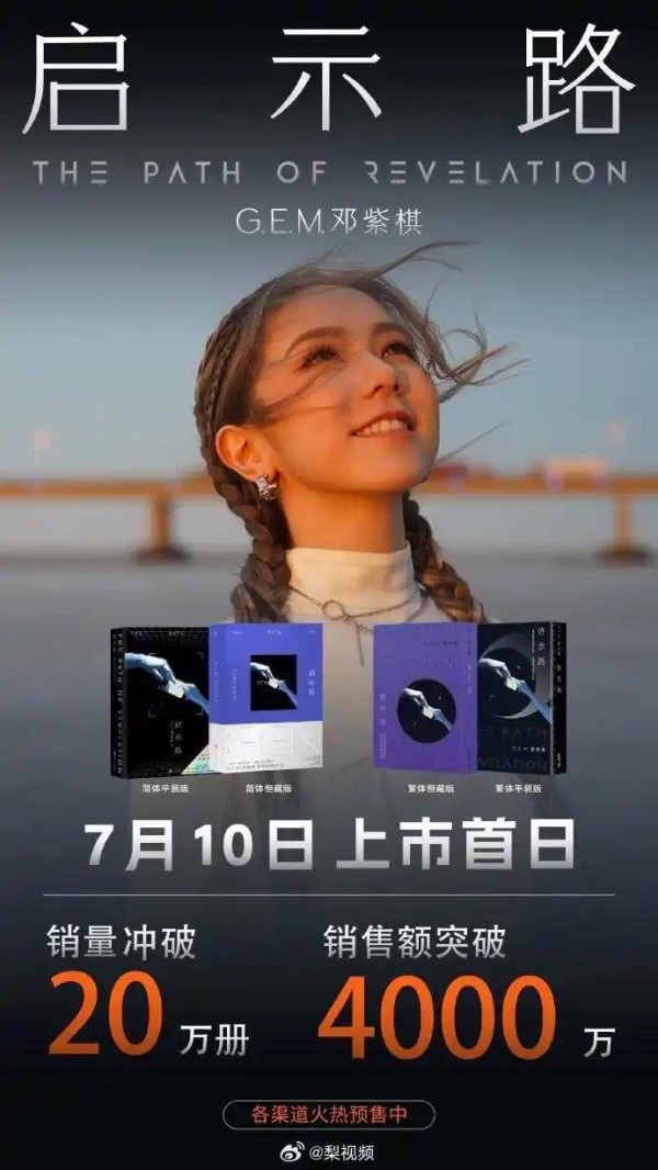 又见到明星跨界!邓紫棋小说《启示路》首日销量破20万册,销售额破4000万邓紫棋跨界写小说首日卖4000万:是才女开挂,还是团队代笔?