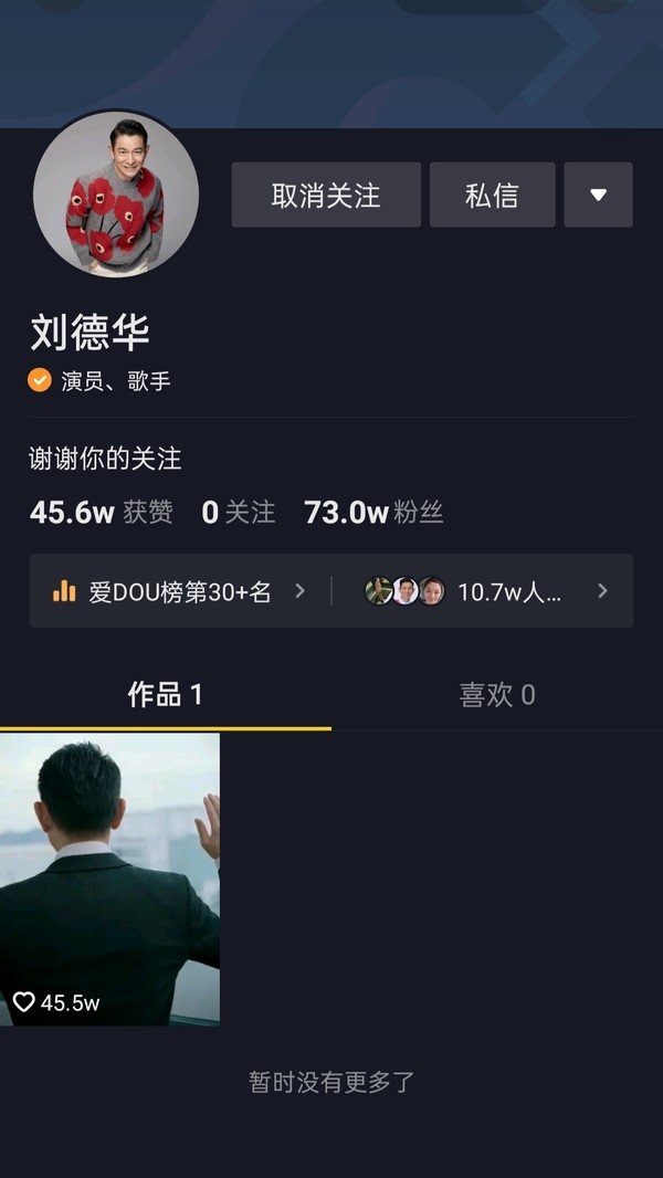 毕竟刘德华的颜值,也是不容置疑的,年轻的时候主演的电影也能看出来。多年前很多人喜欢刘德华,不只是由于实力派的关系,更重要的也在于她的长相非常帅气,属于那个年代的审美。现在多年过去,刘德华脸上充满了沧桑,不过依然能看出帅气的轮廓,这就是未经整容真材实料的颜值明星。刘德华以前也从没有开过任何公开账号,抖音这样的平台虽然配不上他的身份,不过对于宣传推广还是很有必要的,现在的他还经常拍摄电影,有利于以后的电影宣传。
