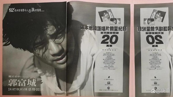 而在隔海的台湾乐坛,郭富城首发专辑销量破百万张,一跃成为新人王。