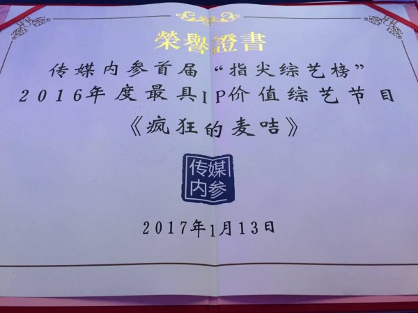 2016年度最具IP价值综艺节目这个奖项的评选根据为传媒內参历时3个月、走访多家机构、回收上百份调研表格真实统计的数据结果。在颁奖台上,主持人伊一还主动向麦咭抛出橄榄枝,希望能和家人一起挑战《疯狂的麦咭》城堡,麦咭等着你哦~