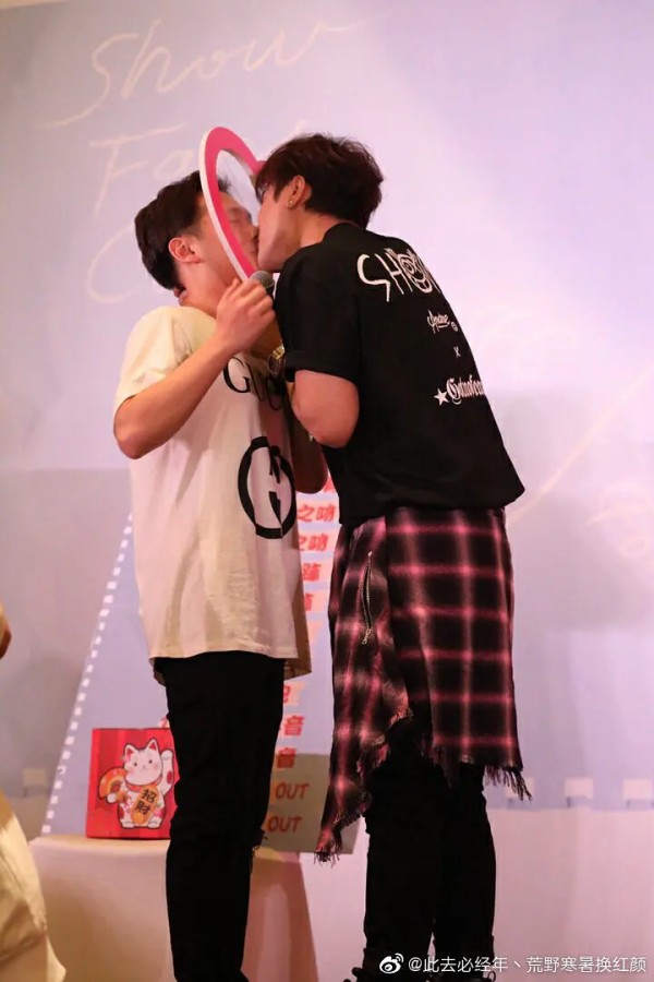 这个东西是亚克力板,隔温,很厚,基本上跟亲玻璃差不多。安全之吻是抽签的游戏之一,今年抽到的还有男粉。