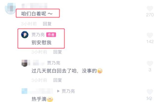 在视频中无奈吐槽之后,贾乃亮在评论区继续表达他的感受,自嘲道:“我难道有吸黑功能?”“就这么黑,你又能怎样?”粉丝们纷纷留言安慰,其中不乏甜馨的经典名言“我们白着呢!”的引用。然而,贾乃亮却以一句“别安慰我!”回应粉丝,展现了他与网友们轻松愉快的互动氛围。