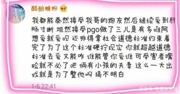 最不应该道歉的人出来道歉,贾乃亮为家人受到这场风波感到心力憔悴。贾乃亮发文的内容让很多粉丝觉得他是在默认这件事,并对PGONE取消了关注。这让很多的PGONE粉丝表示不满。