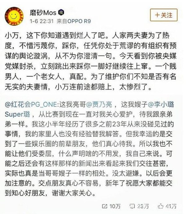 贾乃亮跨年演唱曲目遭李小璐粉丝吐槽,贾乃亮粉丝回怼贾乃亮发长文后取关PGone,PGone粉丝的阵势太吓人,这是微商吧!
