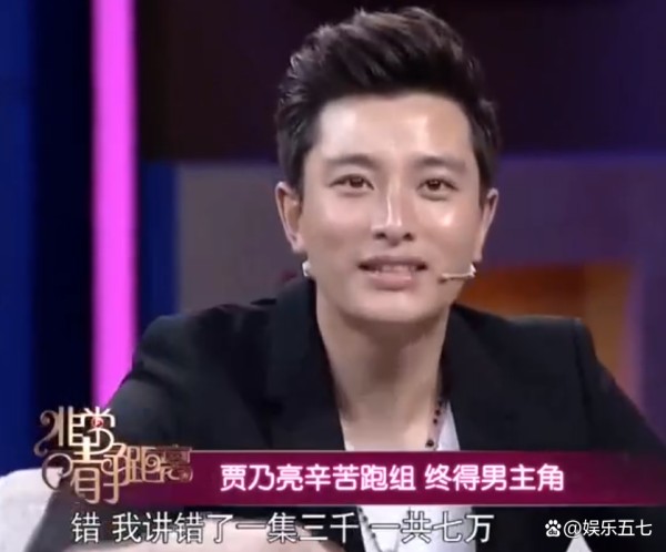 在某次采访中,贾乃亮透露:上学时被剧组看中,选了当男主角,那时候出演男主角,拍一集有3000块钱的片酬,拍完一共赚了70000多块钱,不过我去同剧组的同事喝水就花了30000多块!