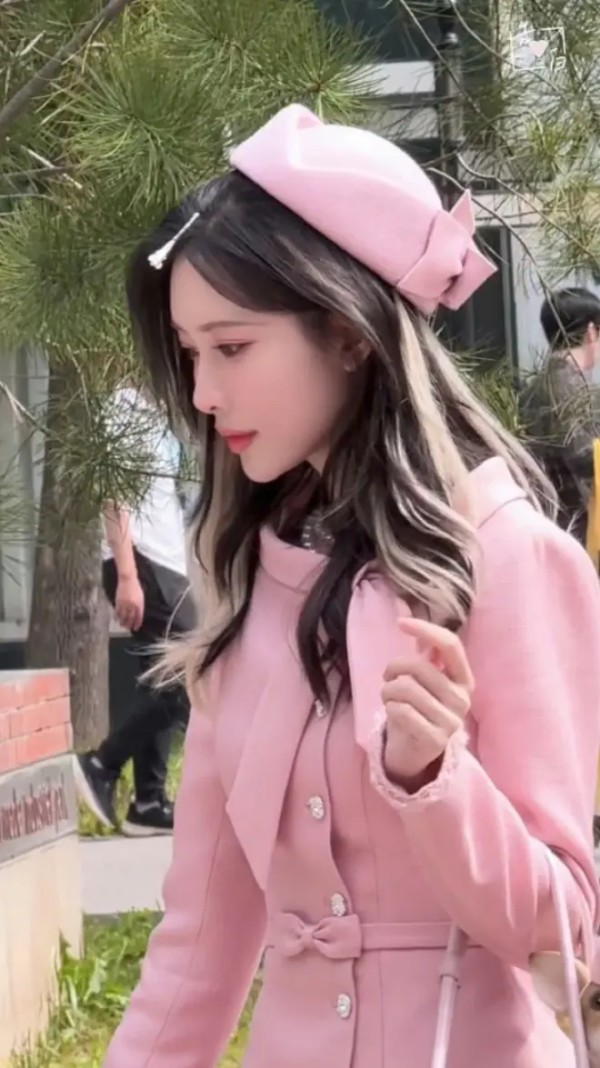照片里,孟子义一身芭比粉西装套装,配上金发挑染、珍珠项链和蝴蝶结发饰,手里拎着个粉色文件夹,脚踩同色系高跟鞋,活脱脱就是从电影里走出来的艾尔·伍兹。这身造型可不是简单模仿,细节做到牙齿了,连指甲都是定制粉色,办公桌、法律文书这些小道具也安排得明明白白,代入感直接拉满。